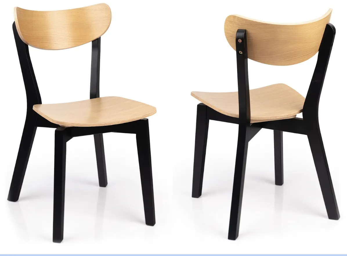 Buk to najpopularniejsze drewno w produkcji krzeseł, szczególnie w Polsce i Europie Środkowej. Charakteryzuje się jednolitą, jasnokremową barwą z różowawym odcieniem oraz drobnymi, subtelnie widocznymi słojami. Buk jest twardym drewnem (twardość około 3,8 w skali Brinella), bardzo wytrzymałym na ściskanie i zginanie, co czyni go idealnym do konstrukcji mebli intensywnie użytkowanych. Jest również stosunkowo łatwy w obróbce, co pozwala na tworzenie wygiętych, ergonomicznych form. Krzesła bukowe świetnie sprawdzają się w jadalni, kuchni, restauracjach i kawiarniach. Buk dobrze przyjmuje bejcę, dzięki czemu można go zabarwić na różne odcienie lub pozostawić w naturalnym, jasnym kolorze.